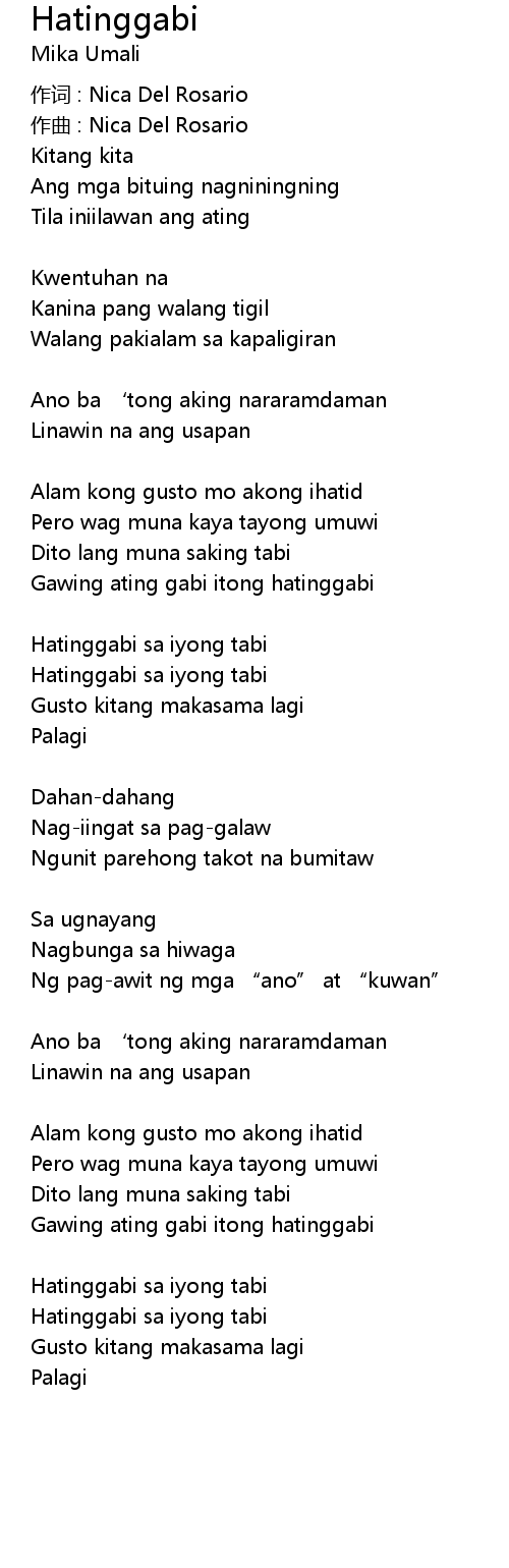 | 作词 : Nica Del Rosario | |
