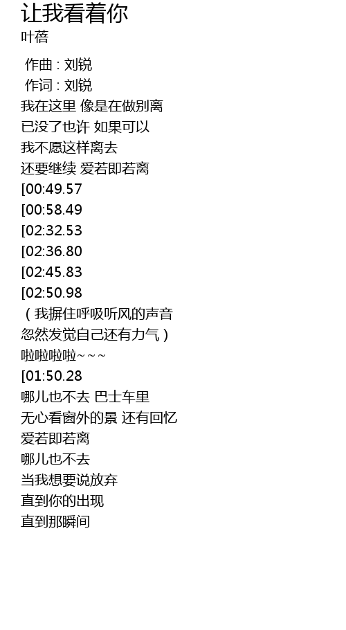 | [03:28.47][02:45.83][01:14.02] | 让我看着你说还是不舍不弃 |