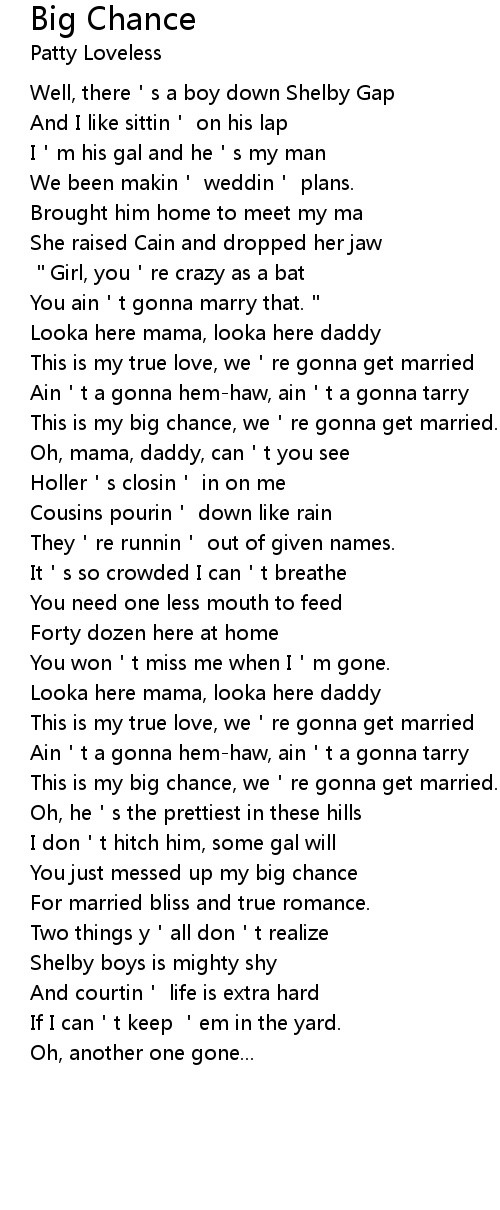 | [00:49.19] | This is my big chance, we re gonna get married. |