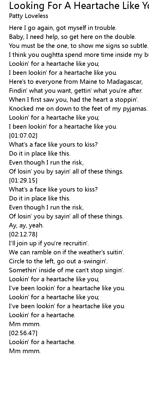 I've been lookin' for a heartache like you. |