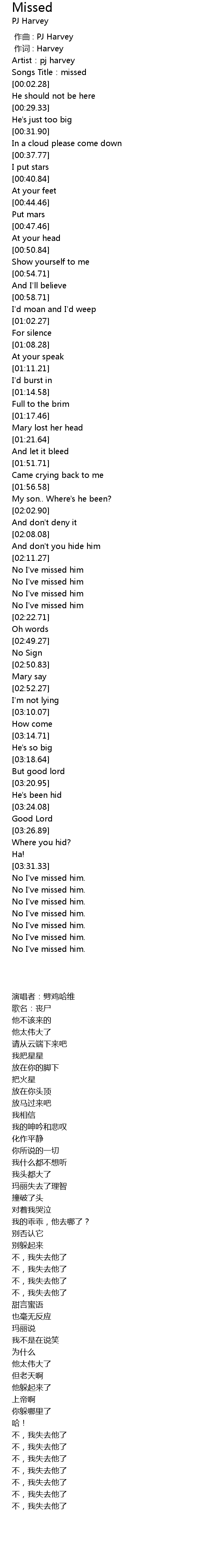 | [00:00.00] | zuò qǔ : PJ Harvey |