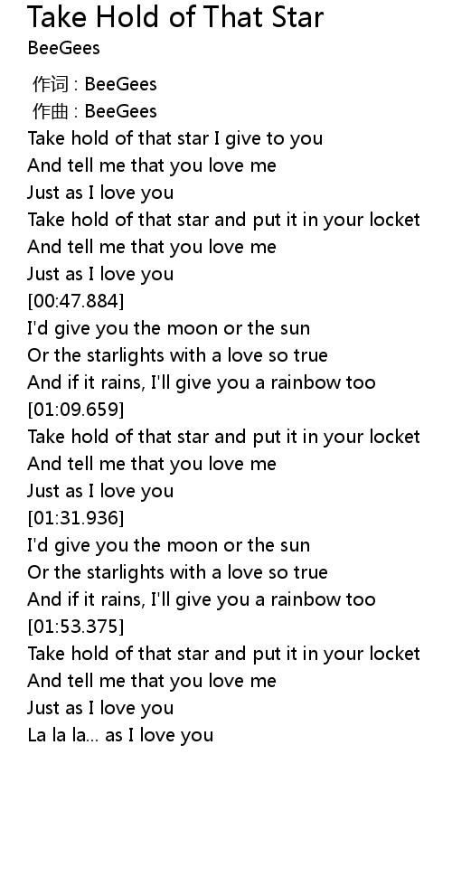 | [01:53.674] | Take hold of that star and put it in your locket |