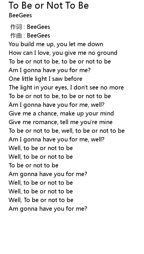 | Song | To Be or Not To Be |