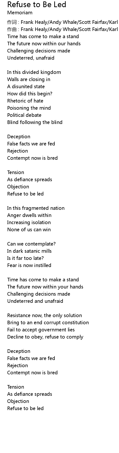 | 作词 : Frank Healy/Andy Whale/Scott Fairfax/Karl Willets | |