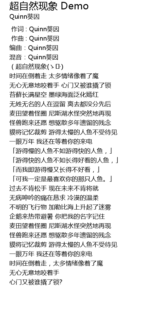 | [00:00.000] | 作词 : Quinn葵因 |