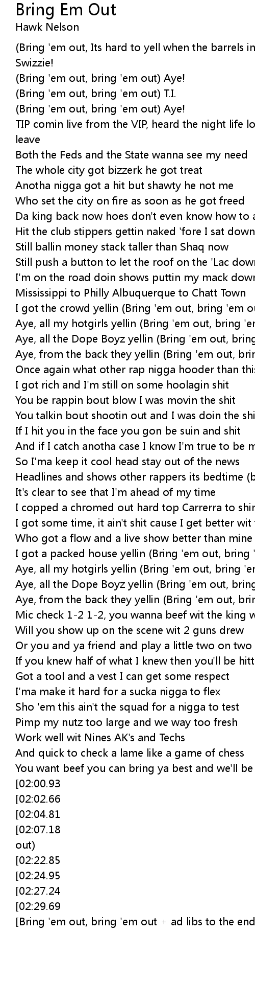 [02:35.51][Bring 'em out, bring 'em out + ad libs to the end of the track]