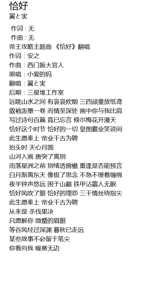 | [00:01:24] | 帝王攻略主题曲 《恰好》翻唱 |