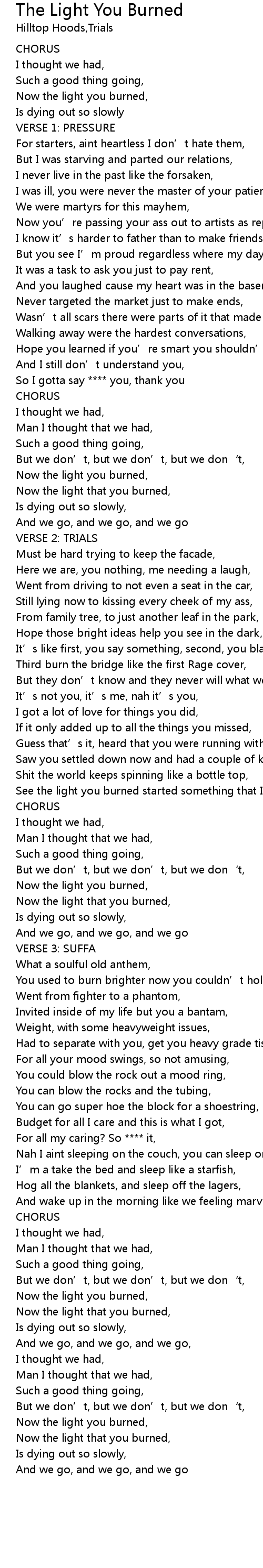 | You used to burn brighter now you couldn’t hold a lighter to a lantern, | |
