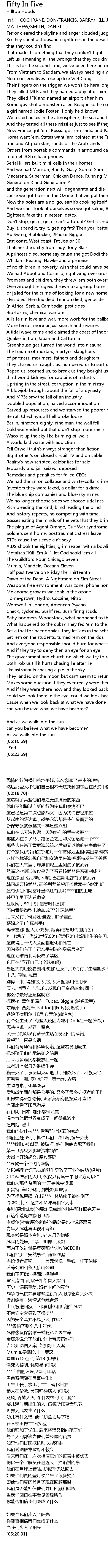 | [02:06.66] | Elvis died, Hendrix died, Lennon died, genocide |
