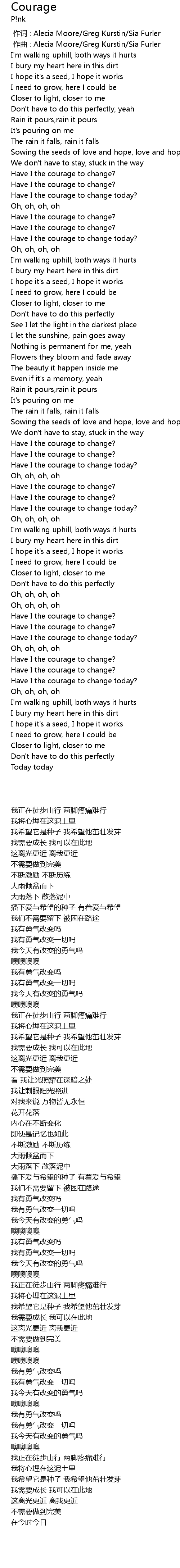 | [00:00.000] | 作词 : Alecia Moore/Greg Kurstin/Sia Furler |