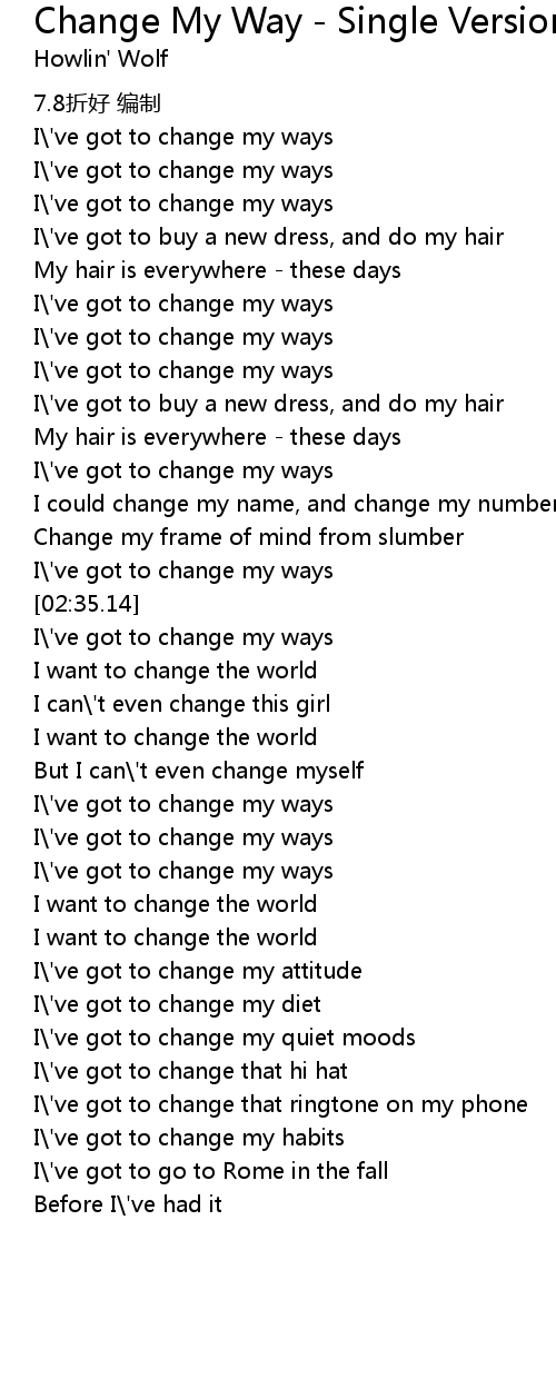 | [04:38.37] | I\'ve got to change my quiet moods |