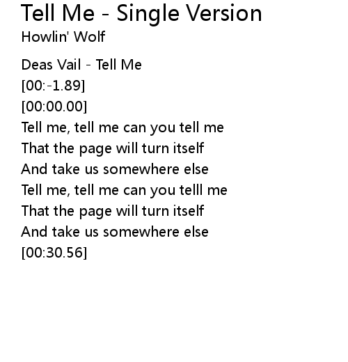 | [00:00.89] | Tell me, tell me can you tell me |