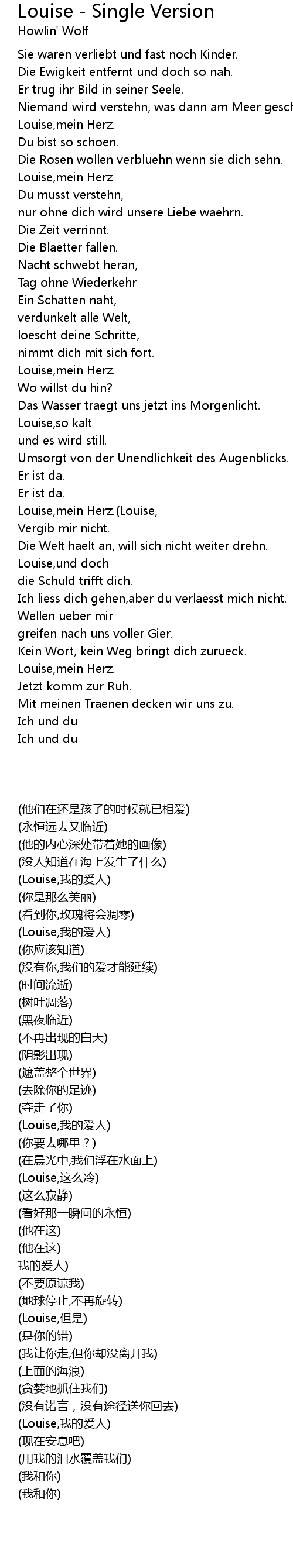 Die Welt haelt an, will sich nicht weiter drehn. |