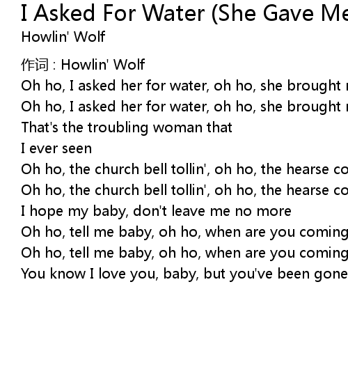 | Oh ho, I asked her for water, oh ho, she brought me gasoline | |