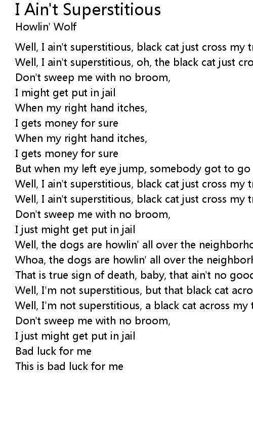 Well, I ain't superstitious, oh, the black cat just cross my trail