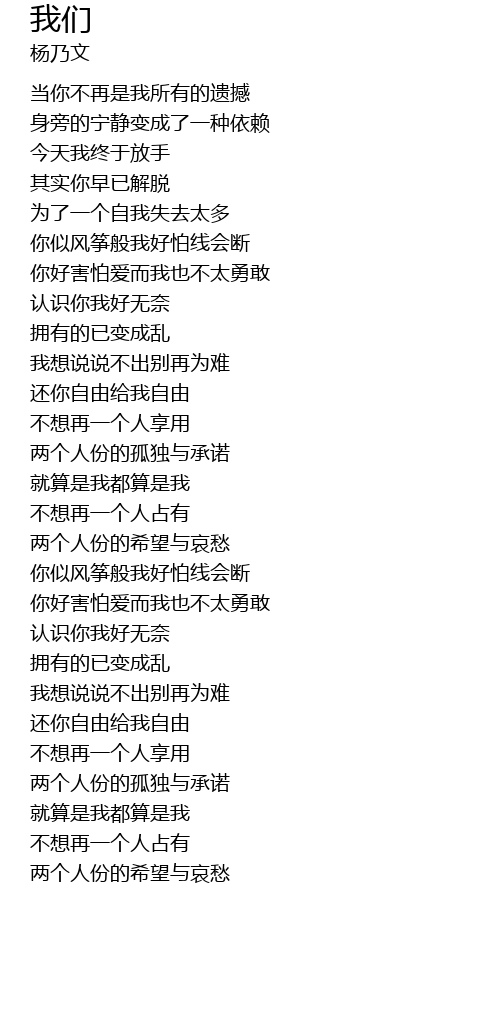 | [00:09.52] | 当你不再是我所有的遗撼 |