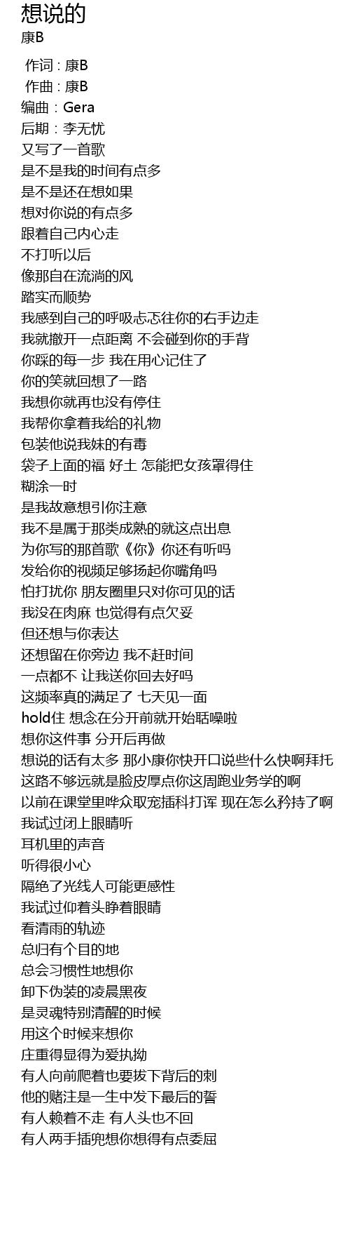 | [00:00.000] | 作词 : 康B |