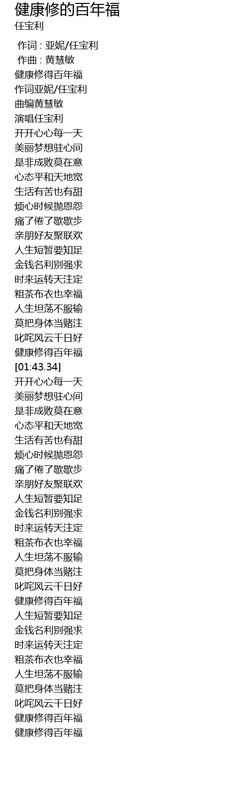 | [03:46.94] | jian kang xiu de bai nian fu |
