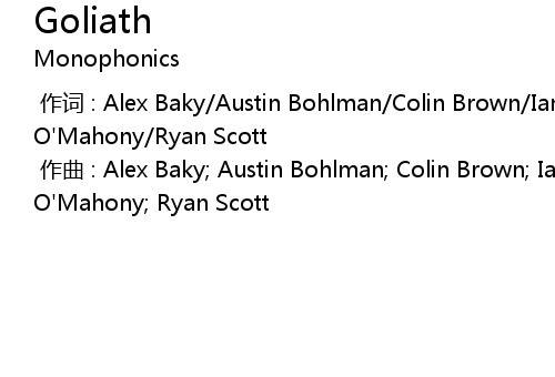 | [00:00.000] | 作曲 : Alex Baky; Austin Bohlman; Colin Brown; Ian McDonald; Myles O'Mahony; Ryan Scott |