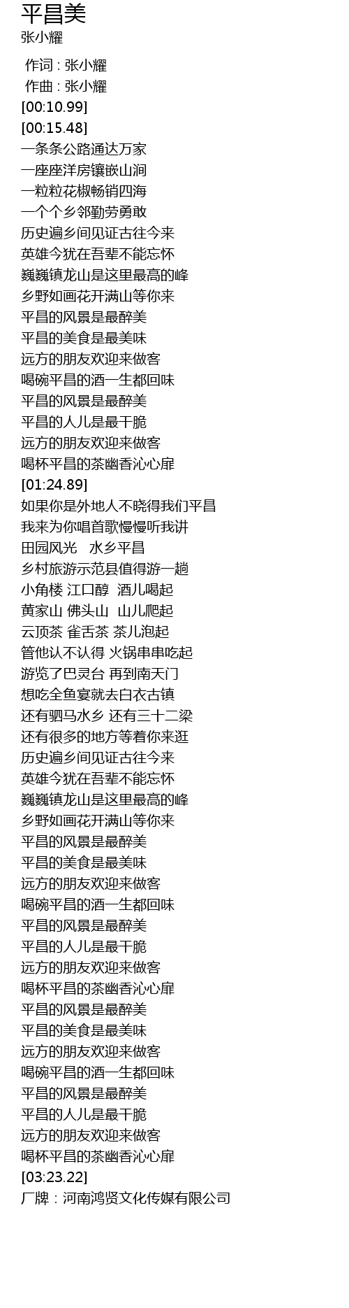 | [03:24.22] | 厂牌:河南鸿贤文化传媒有限公司 |
