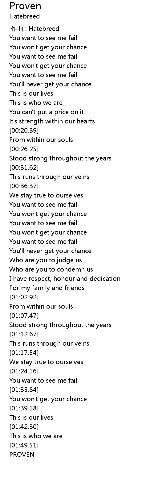 | [00:00.00] | zuò qǔ : Hatebreed |