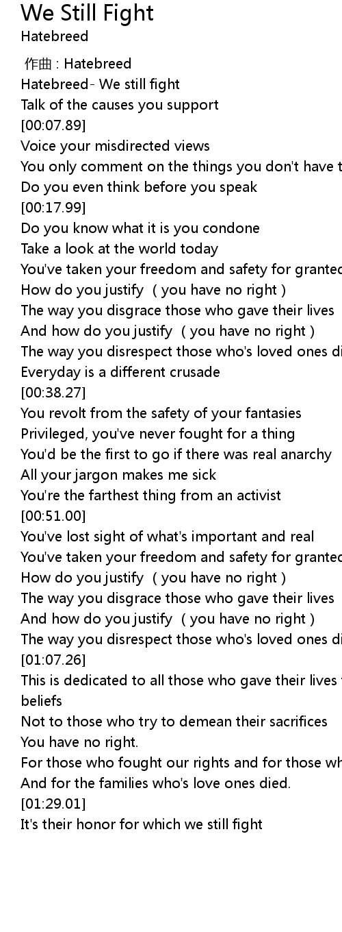| [00:00.45] | Hatebreed We still fight |