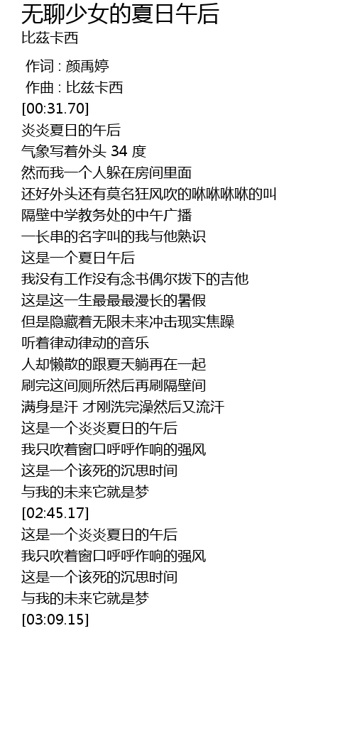 | [02:49.39] | zhè shì yí gè yán yán xià rì de wǔ hòu |