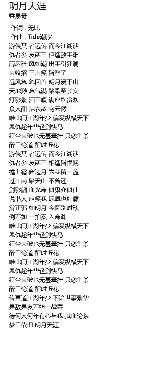 | [00:39.193] | 游侠某 名远传 而今江湖谈 |