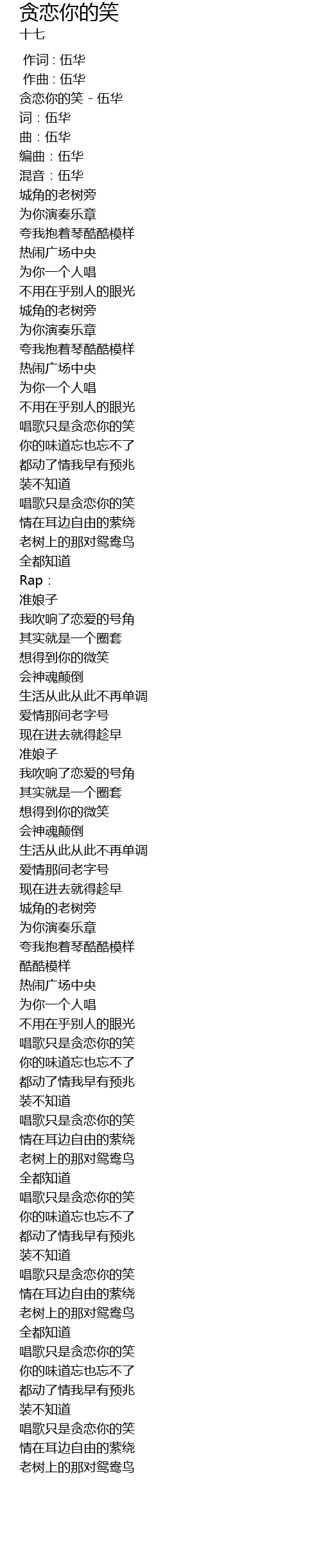 | [00:00.675] | 贪恋你的笑 - 伍华 |