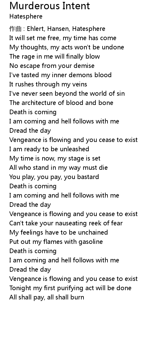 | zuò qǔ : Ehlert, Hansen, Hatesphere | |