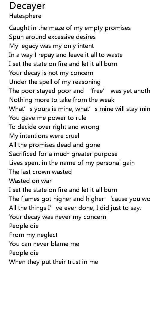 | Your decay was never my concern | |