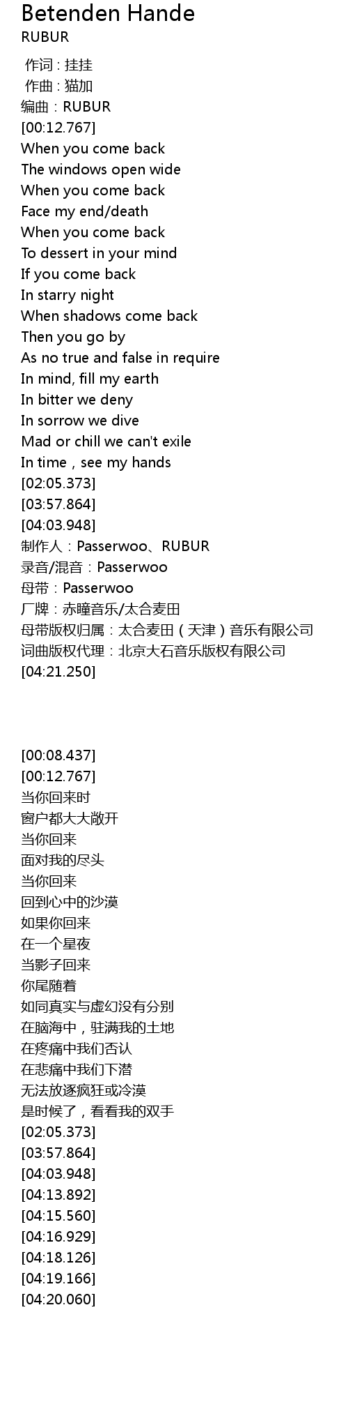 | [04:13.892] | 制作人:Passerwoo、RUBUR |