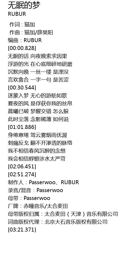 | [03:00.823] | 制作人:Passerwoo、RUBUR |