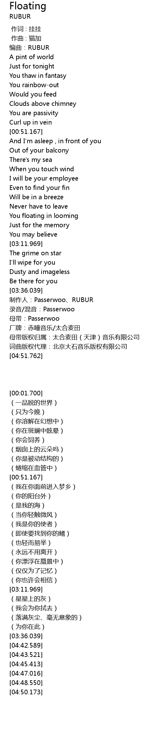 | [04:50.173] | 词曲版权代理:北京大石音乐版权有限公司 |