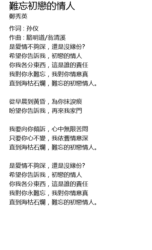 | 直到海枯石爛,難忘的初戀情人。 | |