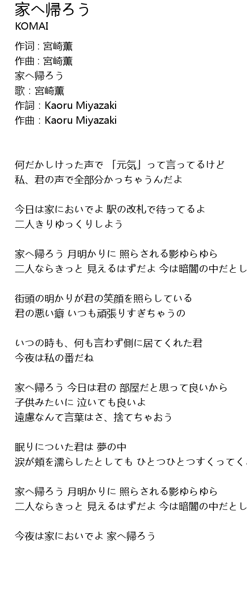 | 今夜は家においでよ 家へ帰ろう |