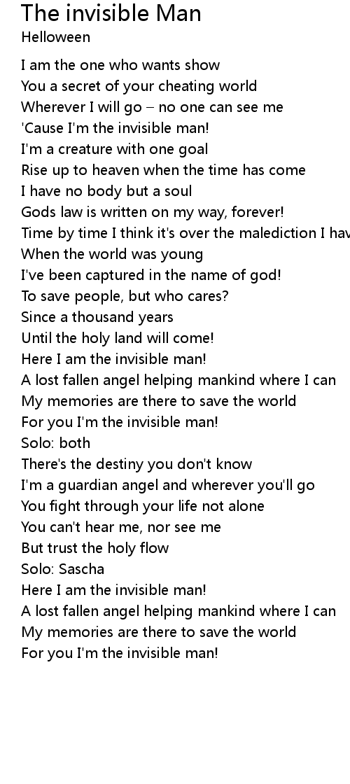 | Song | The invisible Man |