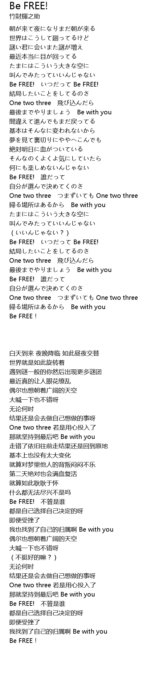| [00:46.960] | Be FREE! いつだって Be FREE! |