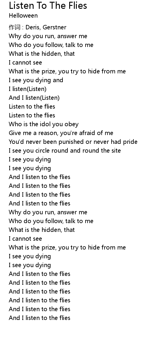 | Song | Listen To The Flies |