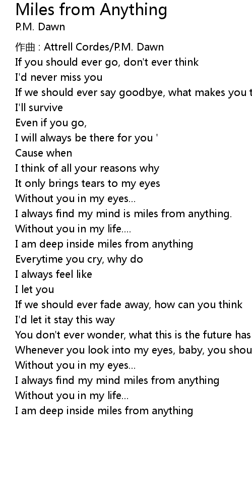| Song | Miles from Anything |