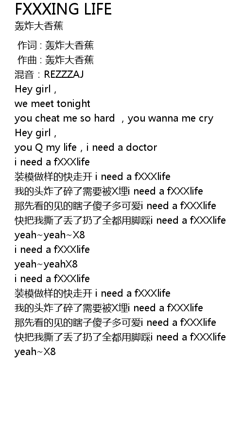 | [00:34.664] | na xian kan de jian de xia zi sha zi duo ke ai i need a fXXXlife |