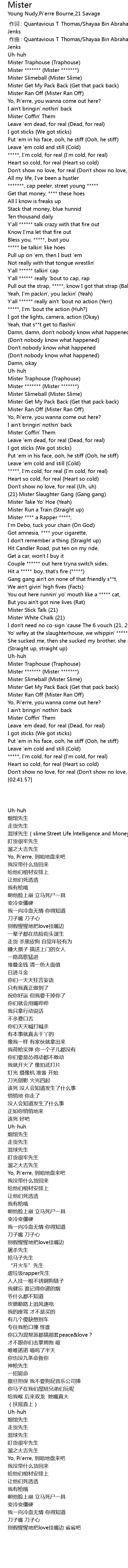 | [01:34.16] | 21 Mister Slaughter Gang Gang gang |