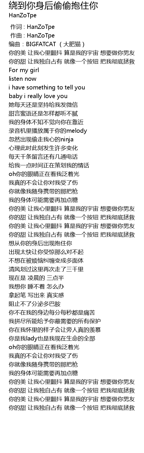 | Song | 绕到你身后偷偷抱住你 |