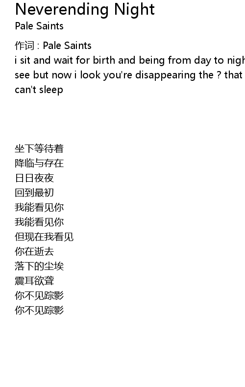| 作词 : Pale Saints | |