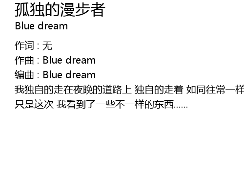 | wǒ dú zì de zǒu zài yè wǎn de dào lù shàng dú zì de zǒu zhe rú tóng wǎng cháng yí yàng zhǐ shì zhè cì wǒ kàn dào le yī xiē bù yí yàng de dōng xī...... |