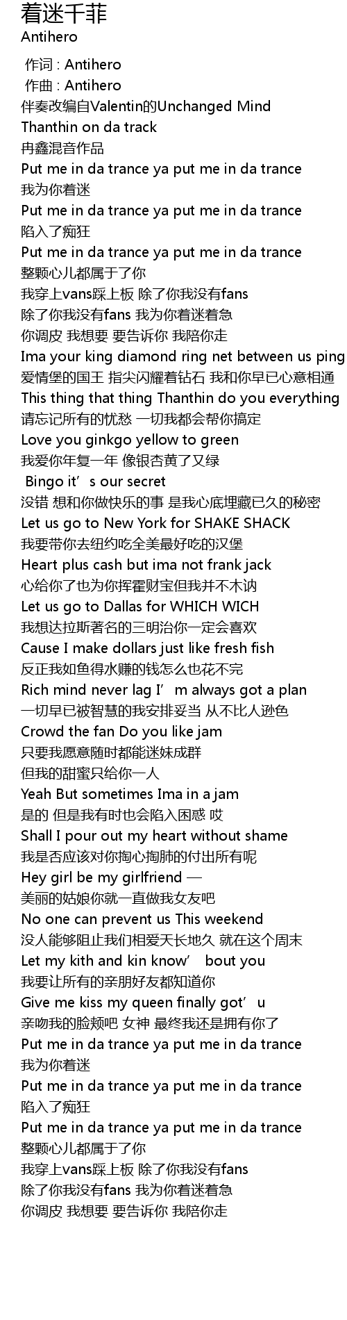 | [00:20.100] | Put me in da trance ya put me in da trance |