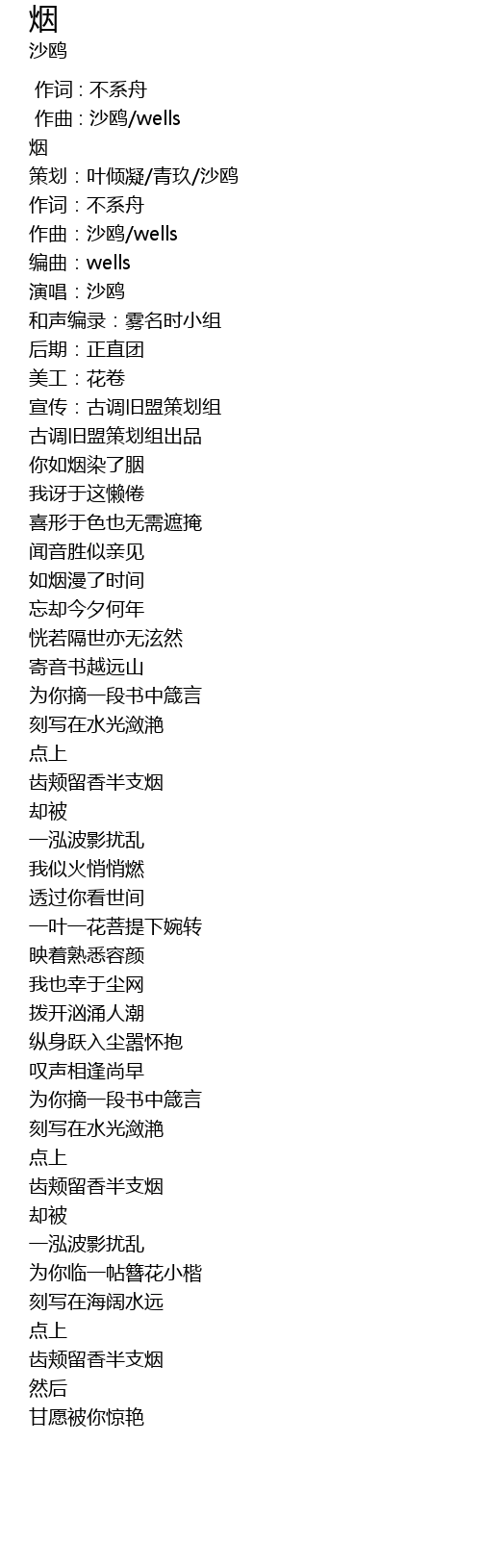 | [00:13.584] | 作曲:沙鸥/wells |