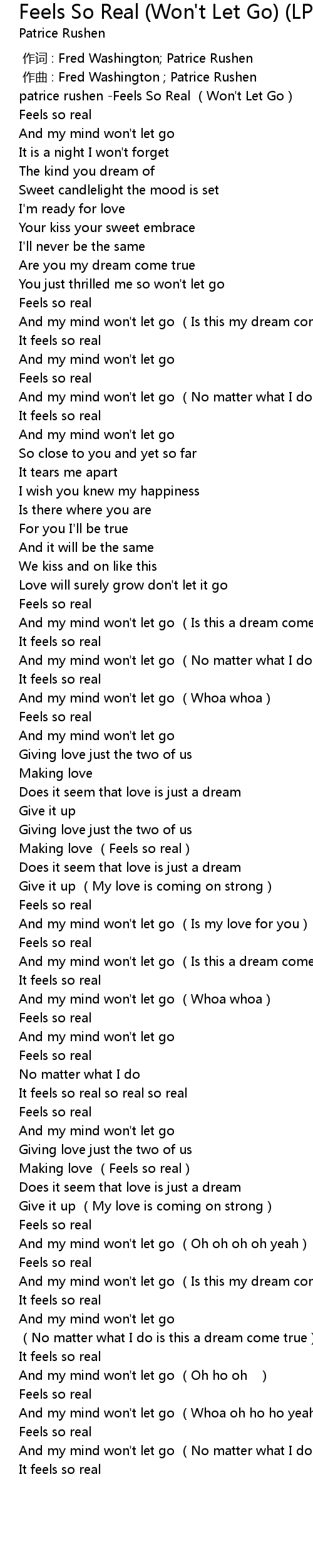 | [00:00.00] | patrice rushen Feels So Real Won' t Let Go |