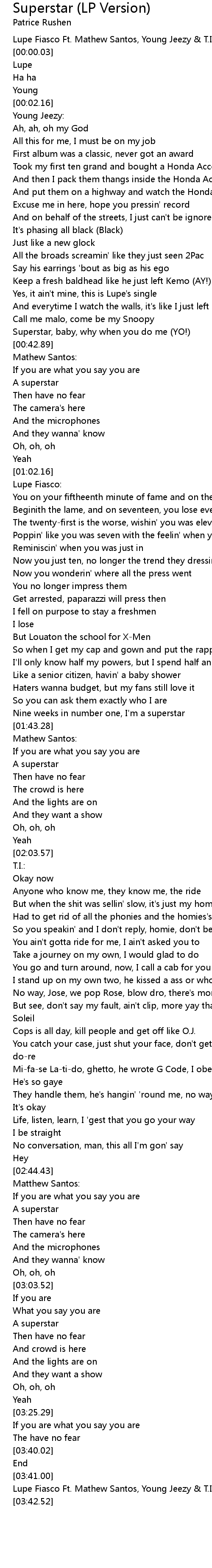 Lupe Fiasco Ft. Mathew Santos, Young Jeezy & T.I. - Superstar (Remix) |