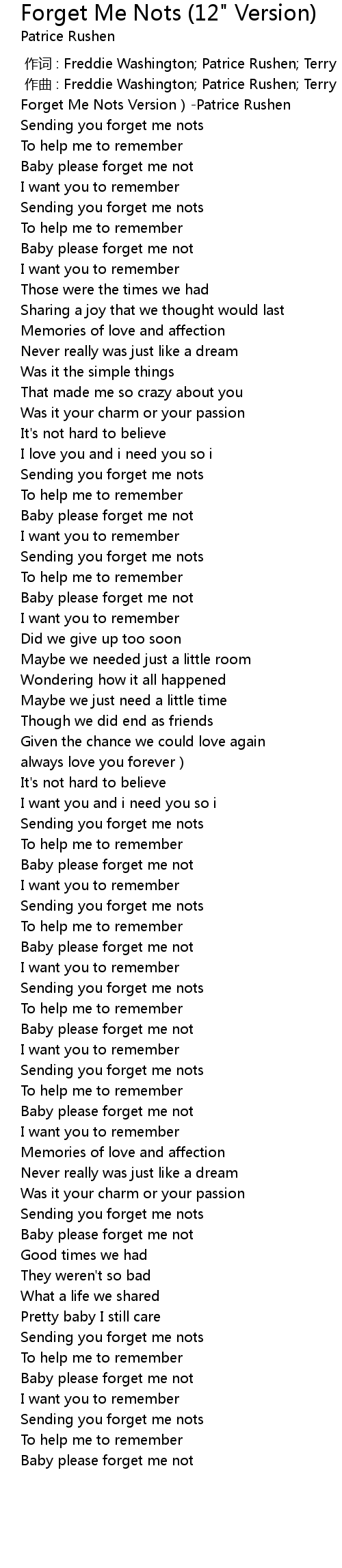 | [00:01.01] | Forget Me Nots Version Patrice Rushen |